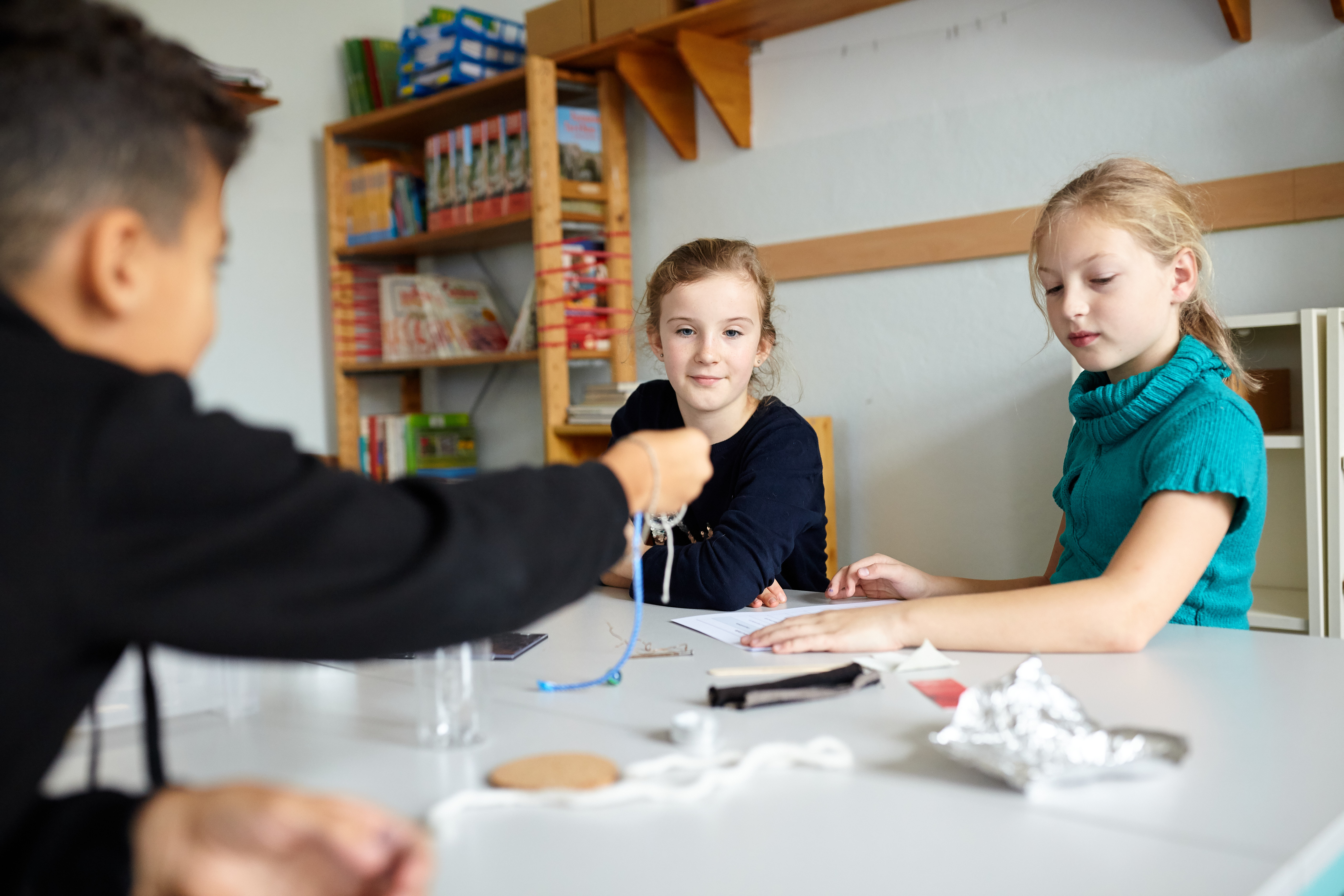 Das Bild zeigt Grundschülerinnen und -schüler in einer offenen Lernumgebung.
