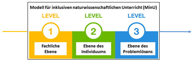 Er kann anhand des Modells für den inklusiven naturwissenschaftlichen Unterricht (MinU) Schritt für Schritt vollzogen werden (Kranz, 2021). Die Ableitung des Modells erfolgte theoriebasiert unter Einfluss praktischer Unterrichtserfahrungen.