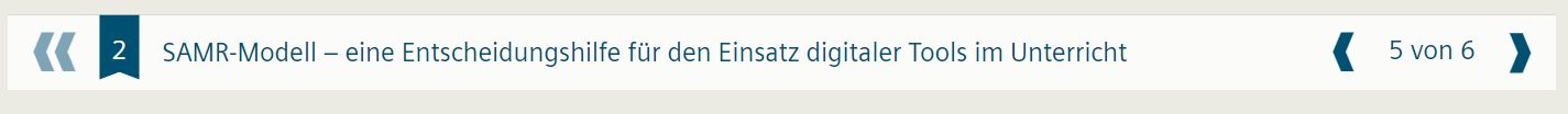 Wenn Sie die Kapitel eines Moduls in der empfohlenen Reihenfolge durcharbeiten möchten, können Sie mit den Pfeil-Buttons in der Funktionsleiste durch die Seiten navigieren. Links sehen Sie Nummer und Titel des aktuellen Kapitels: