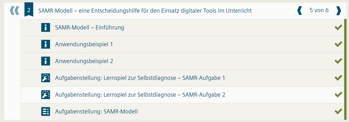Über den Doppelpfeil ganz links gelangen Sie zur Übersicht des aktuellen Moduls, wobei das aktuelle Kapitel im Detail angezeigt wird.