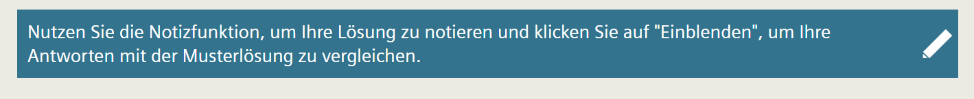 Ihre Gedanken und Antworten offener Aufgabenstellungen können Sie über die Notizfunktion notieren (siehe unten: Wie nutze ich die Notizfunktion?) und mit den angebotenen Lösungen vergleichen.