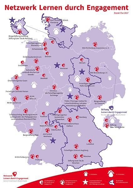 Im bundesweiten Netzwerk Lernen durch Engagement (LdE) begegnen sich engagierte Schulen, die mit LdE arbeiten, sowie Partner aus der Zivilgesellschaft und Bildungsverwaltung, die als LdE-Kompetenzzentren Schulen unterstützen, beraten und begleiten.