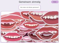 In der Übung werden in dem Stil einer Collage vielfältige Illustrationen von Mündern, dann Augen und zum Schluss Geschlechtsteilen angezeigt – alle mit der Frage „Was haben die Körperteile gemeinsam?“