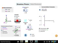 In 4 Bildschirmdarstellungen lassen sich unterschiedliche Messungen nachstellen. Im Münzbildschirm können z. B. Vorspannungen von Münzen gemessen werden. Auf dem Photonen-Bildschirm können Schülerinnen und Schüler die Polarisation einzelner Photonen messen, die durch einen polarisierenden Strahlenteiler geschickt werden. Weiter gibt es den Spin- und den Bloch-Sphären-Bildschirm für unterschiedliche Experimente.