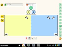 Im Intro-Bildschirm können Zahlen von 0 bis 10 in einem ortsbezogenen Kontext zerlegt werden, d. h. die Summanden werden durch ihre Position in einem linken oder rechten Bereich bestimmt. Im Zehnerbildschirm werden Zahlen von 0 bis 10 in attributbasierten Kontexten zerlegt, d. h. die Summanden werden durch das Attribut eines Objekts bestimmt, z. B. durch die Farbe. Auf dem Zwanzig-Bildschirm zerlegen die Schülerinnen und Schüler Zahlen von 11 bis 20. Es werden sowohl ortsbezogene, attributbezogene als auch gemischte Kontexte angeboten, sodass eine Zahl auf verschiedene Arten zerlegt werden kann.